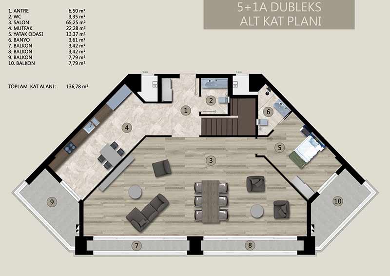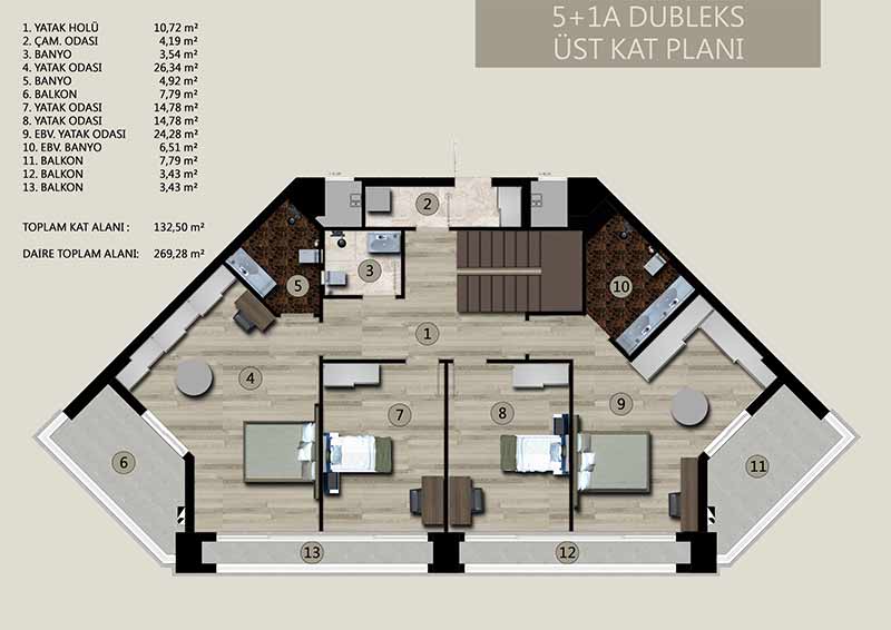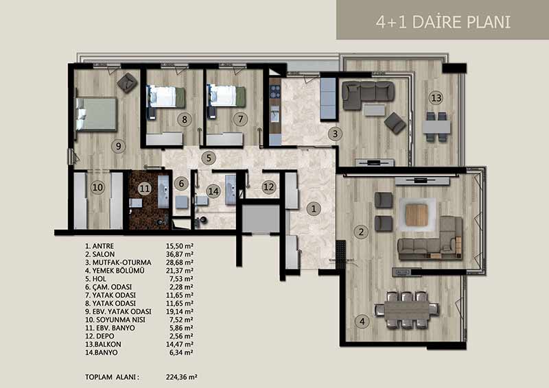 Daire Seçenekleri: 2+1 , 4+1 , 5+1