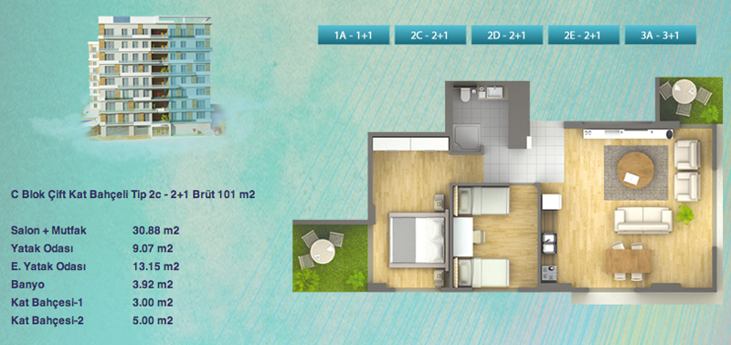 Daire Seçenekleri: 1+1,2+1,3+1