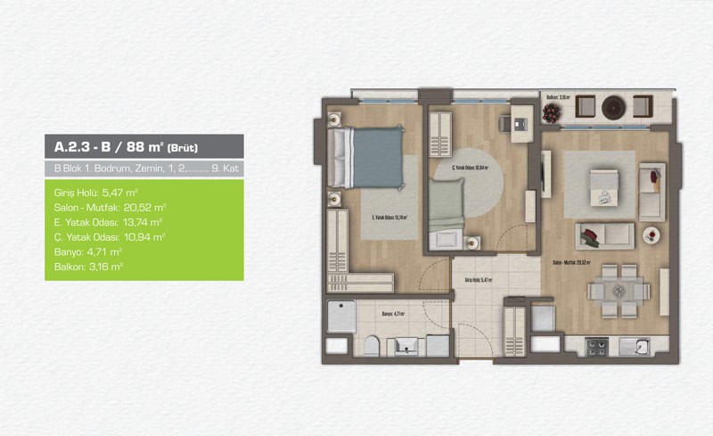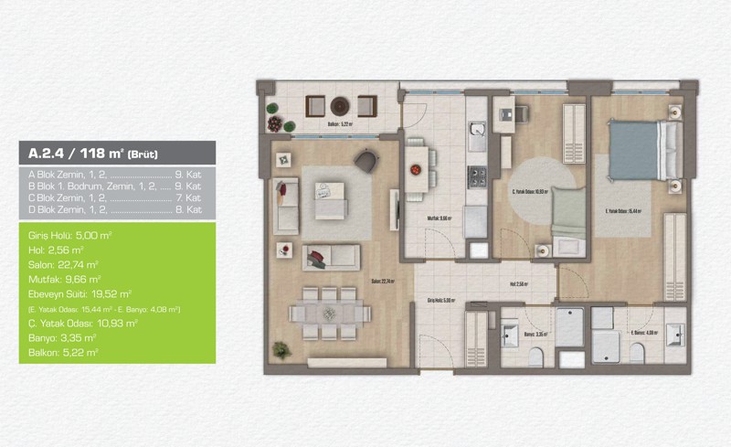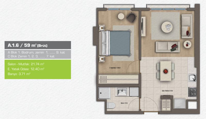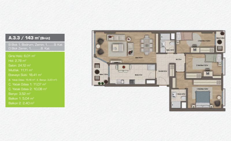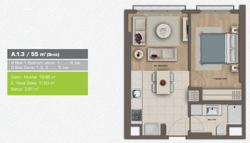 Daire Seçenekleri: 1+1,2+1,3+1,4+1