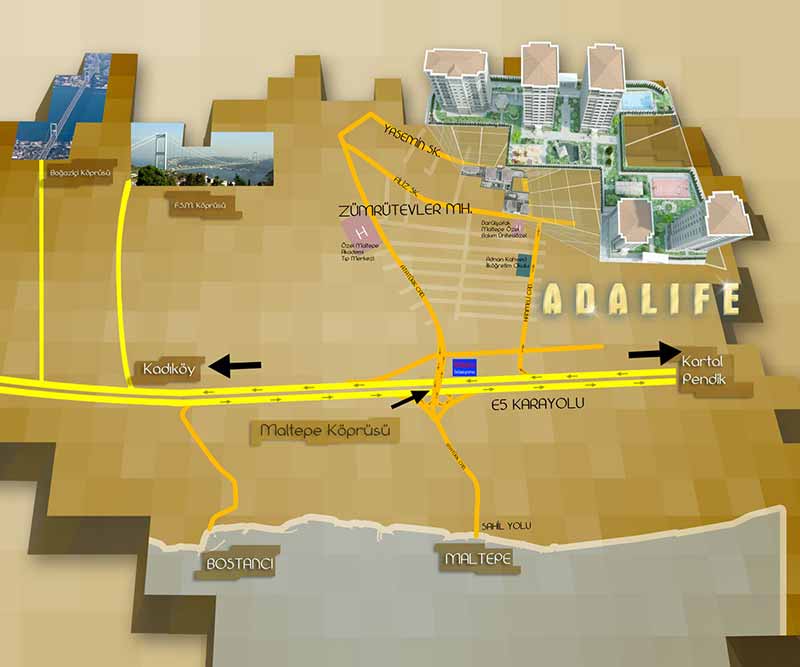 Adalife Satış Ofisi: Zümrütevler Mah. Yasemin Sok. Adalife Sitesi A Blok Daire:2