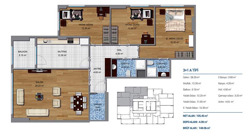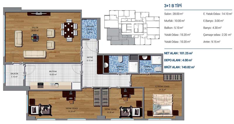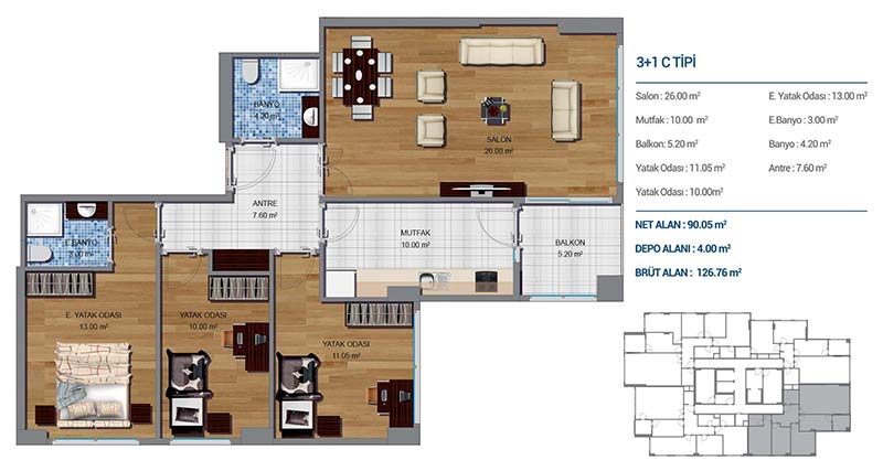 Daire Seçenekleri: 2+1, 3+1, 4+1