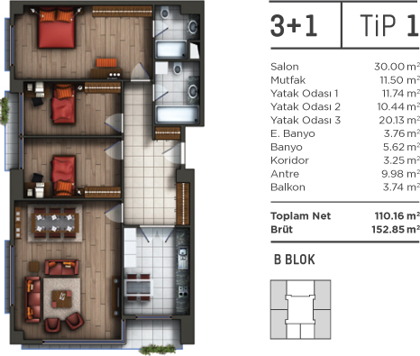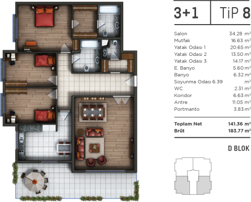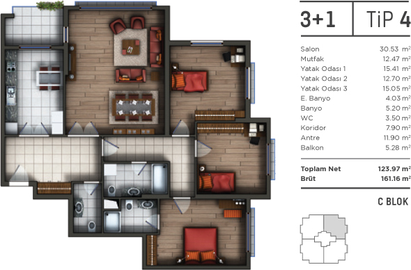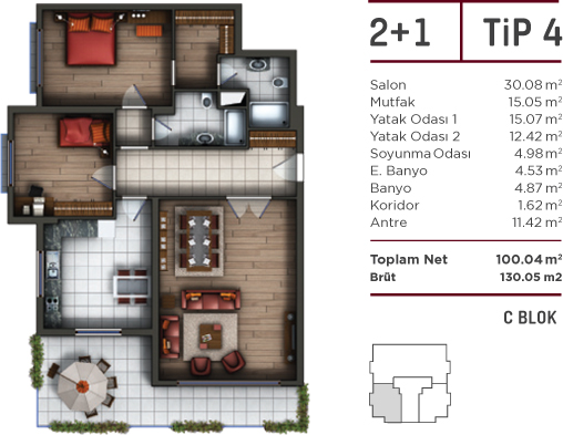 Daire Seçenekleri: 1+0,1+1,2+1,3+1,4+1