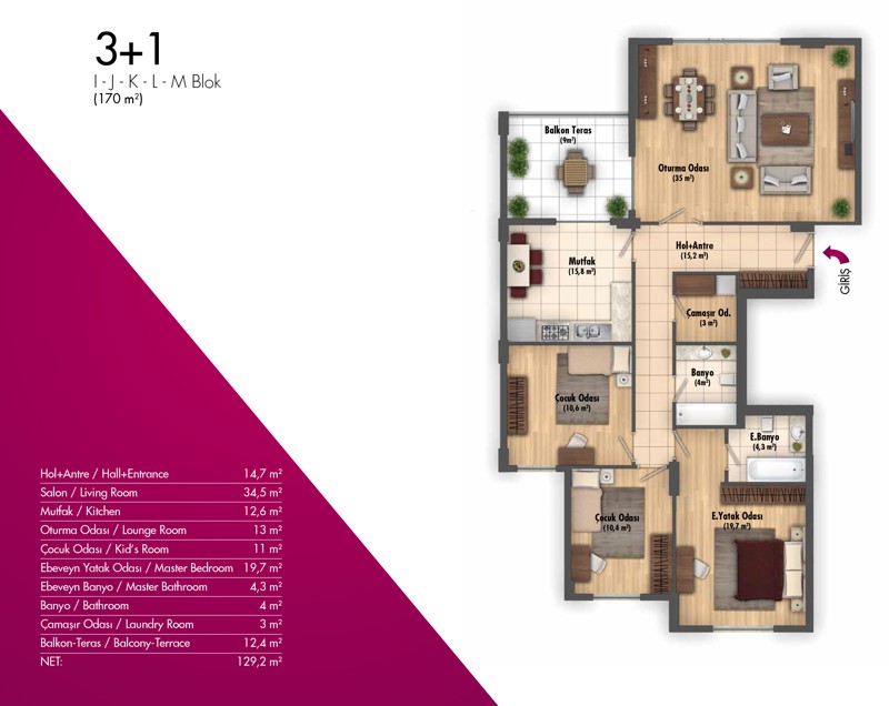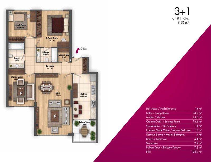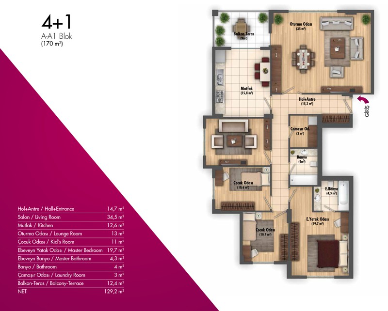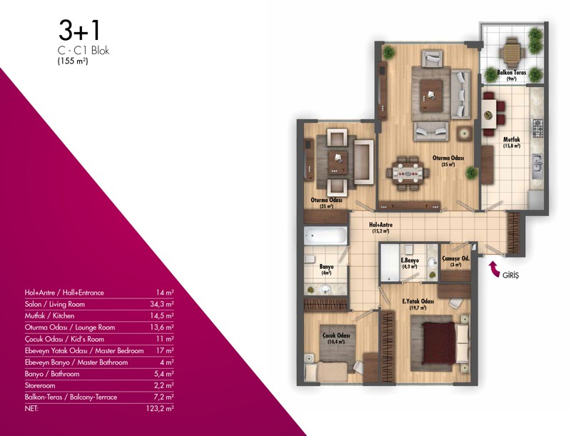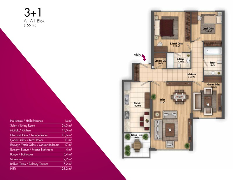 Daire Seçenekleri: 2+1,3+1,4+1