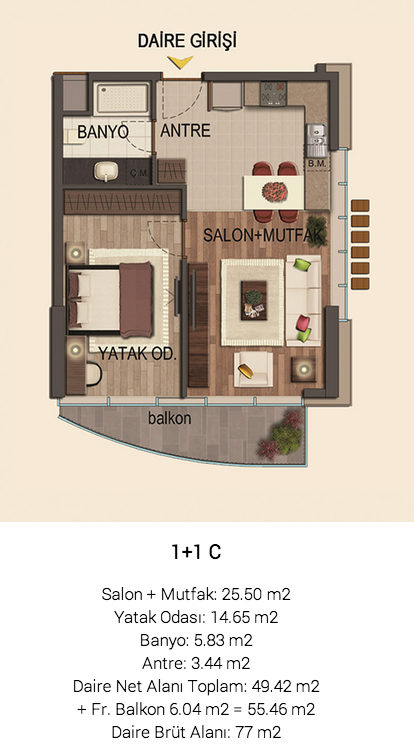 Daire Seçenekleri: 1+1,2+1