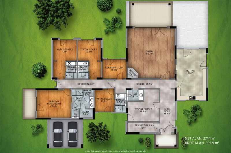 Daire Seçenekleri: 3+1, 4+1, 5+1, 6+1, 7+1