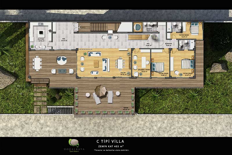 Daire Seçenekleri: 5+1 dubleks konutlar, 4+1 tek konutlar, 3+1 tek ko