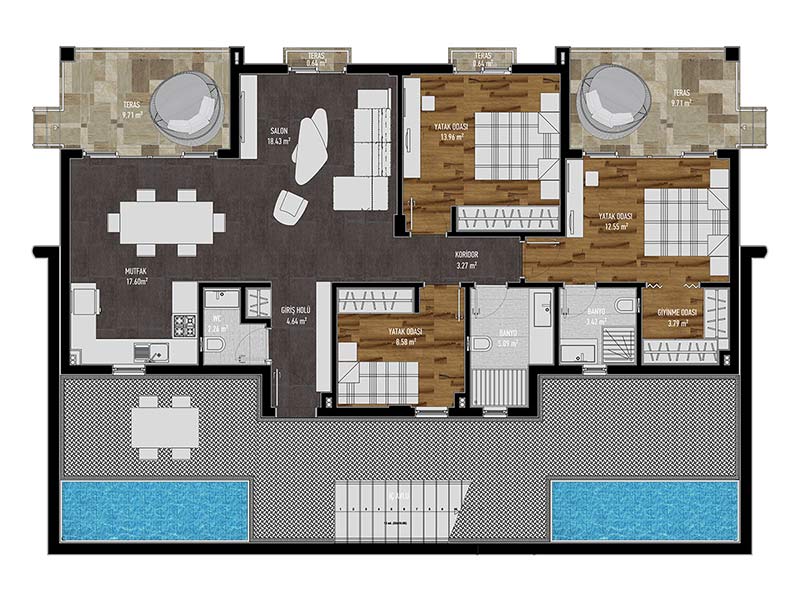 Daire Seçenekleri: 1+1, 2+1 , 3+1