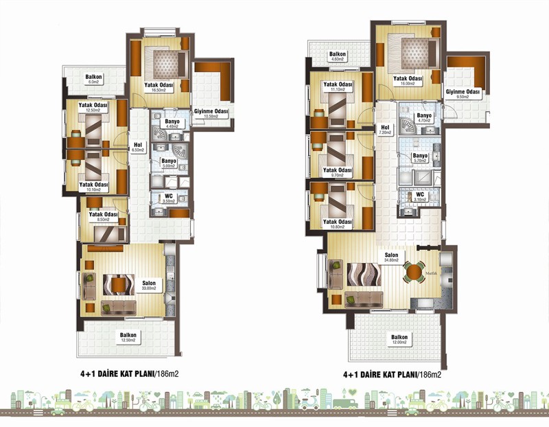 Daire Seçenekleri: 1+1,2+1,3+1,4+1