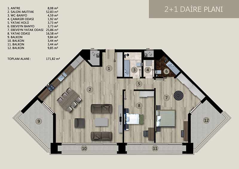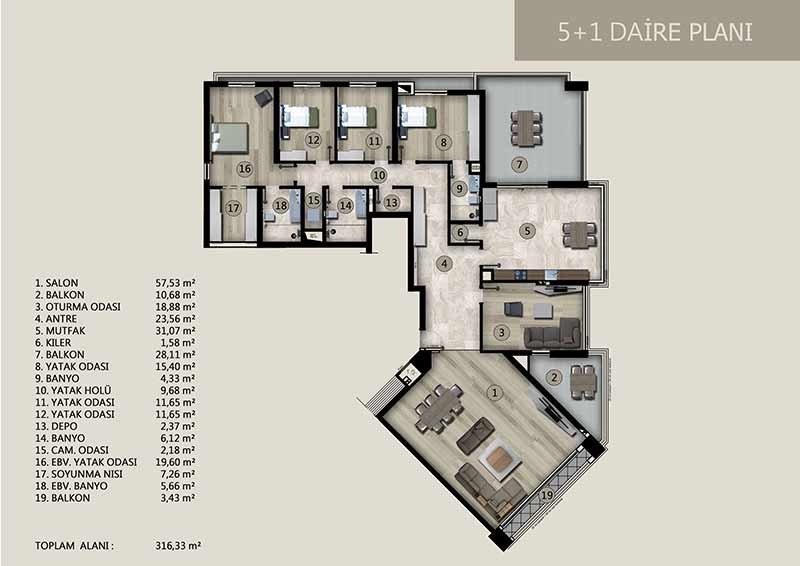 Daire Seçenekleri: 2+1 , 4+1 , 5+1