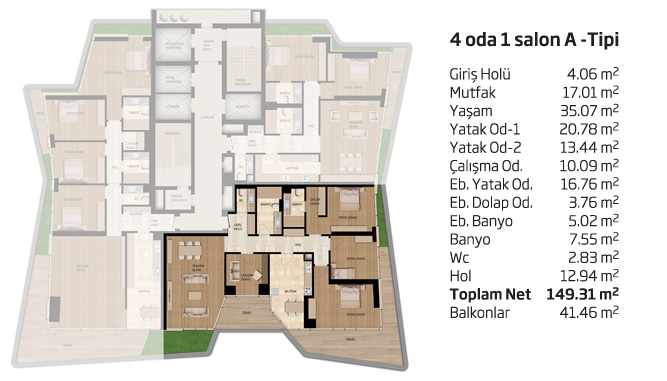 Daire Seçenekleri: 2+1, 4+1, 5+1