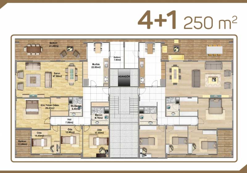 Daire Seçenekleri: 3+1,4+1,5+1,6+1