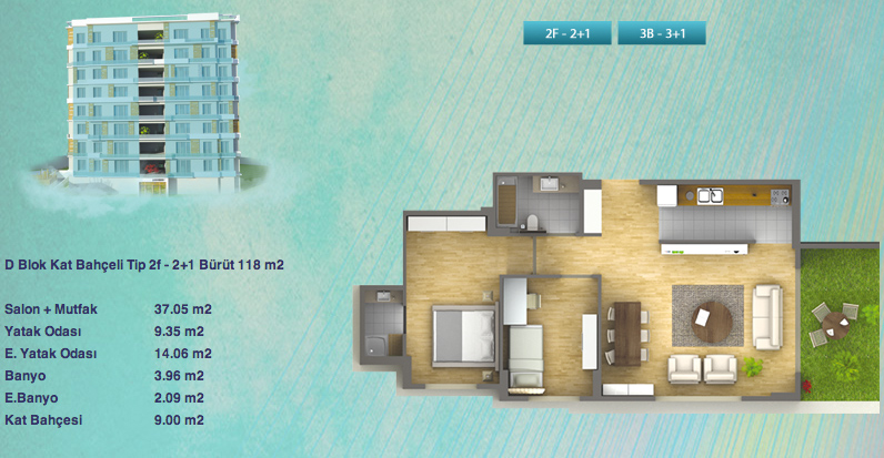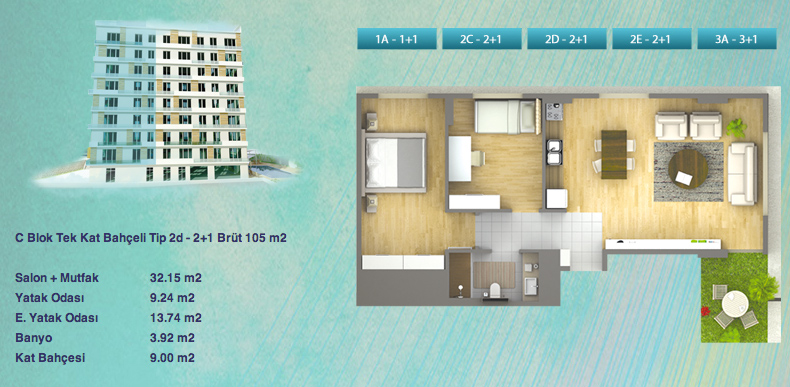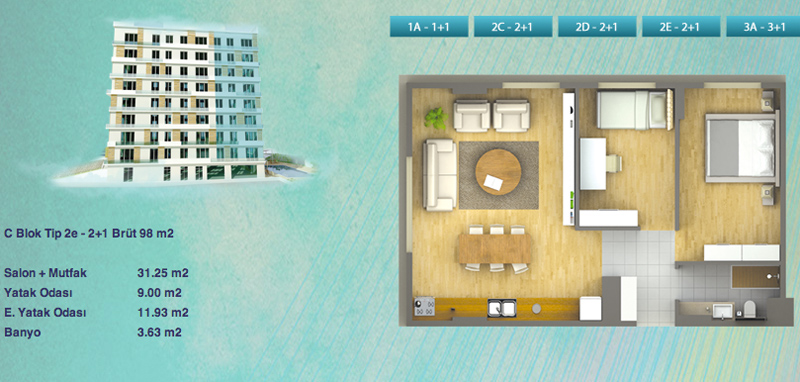 Daire Seçenekleri: 1+1,2+1,3+1