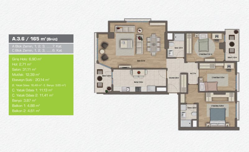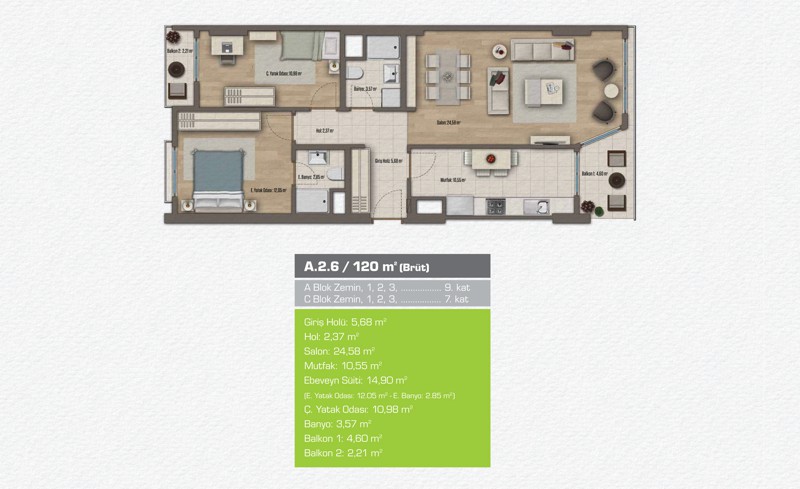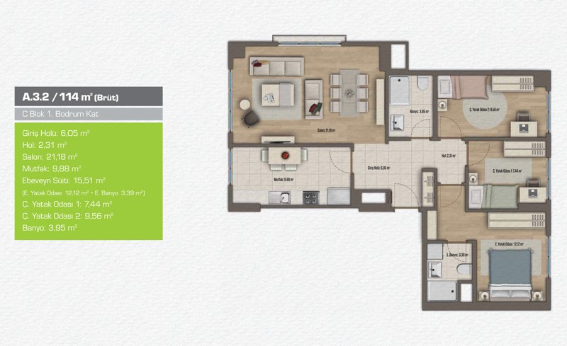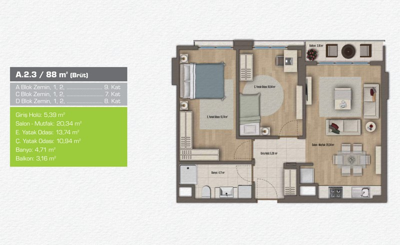 Daire Seçenekleri: 1+1,2+1,3+1,4+1