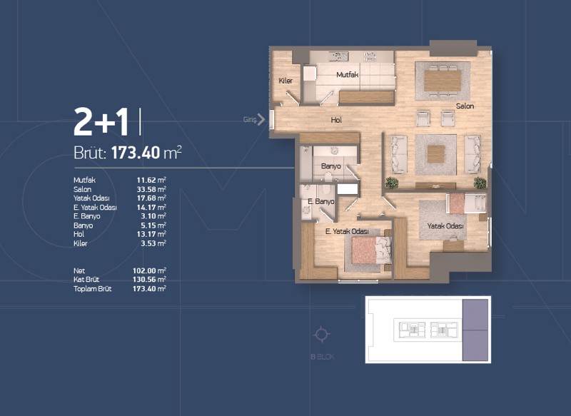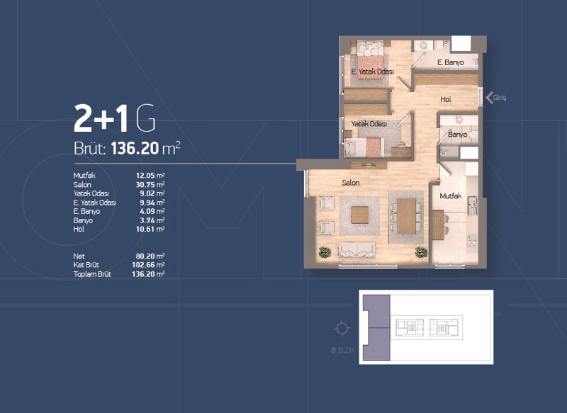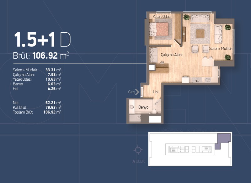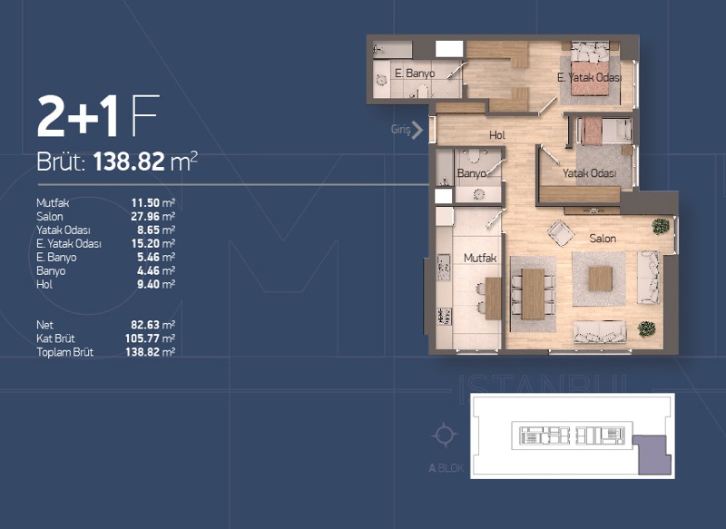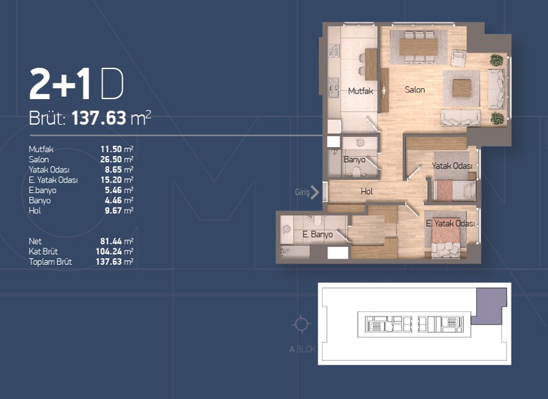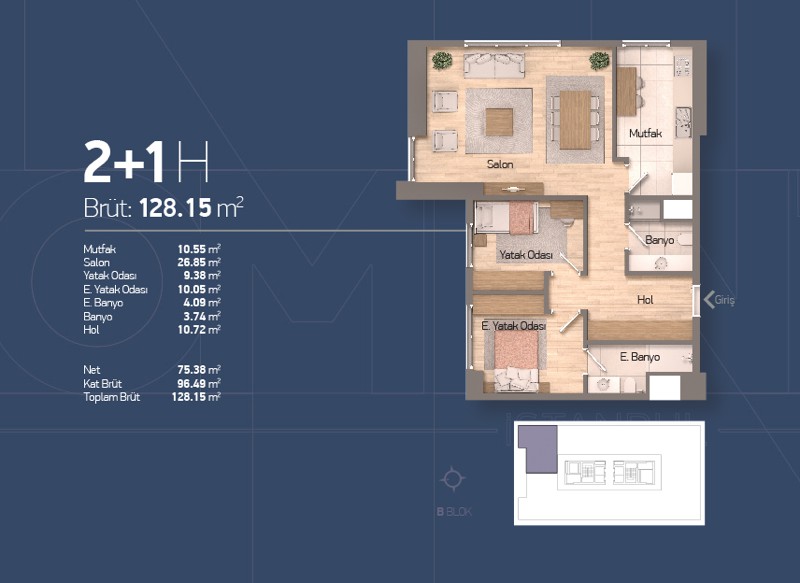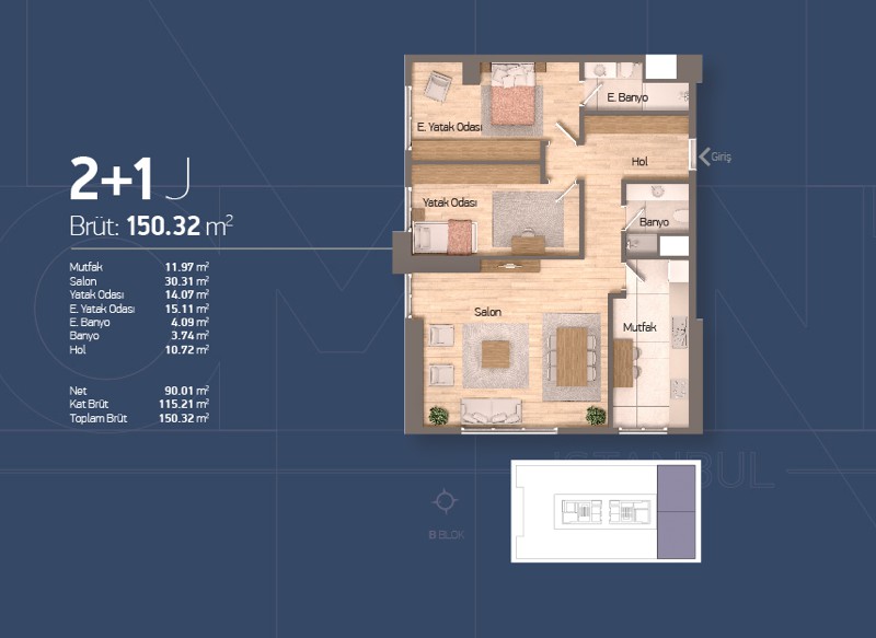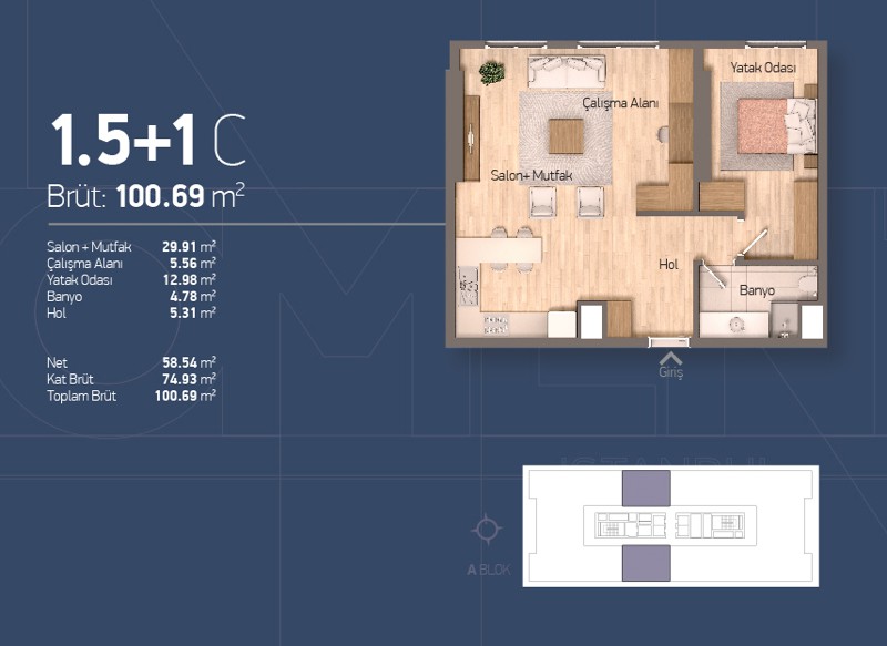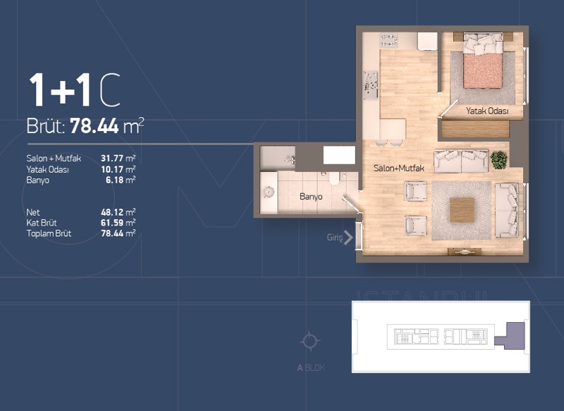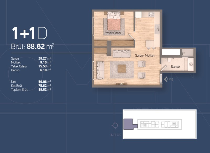Daire Seçenekleri: 1+1,1.5+1,2+1