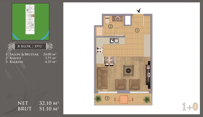 Daire Seçenekleri: 1+0,1+1,2+1,3+1