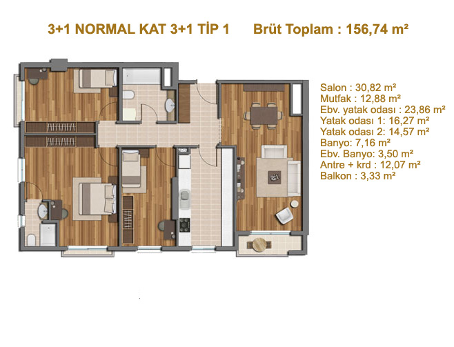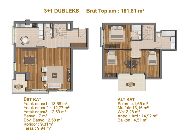 Daire Seçenekleri: 1+0,1+1,2+1,3+1,4+1