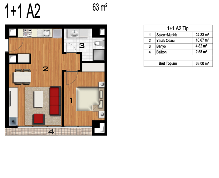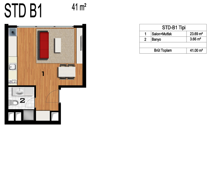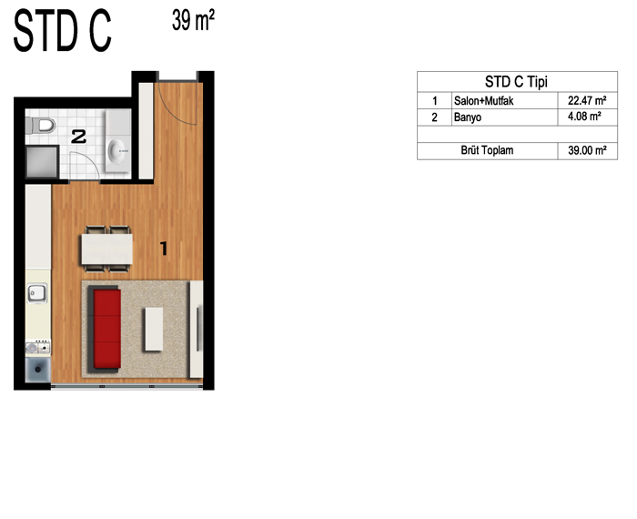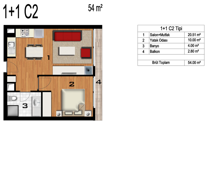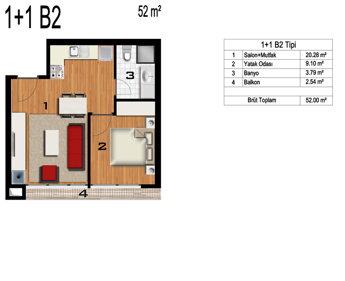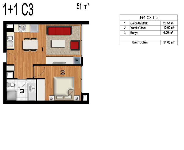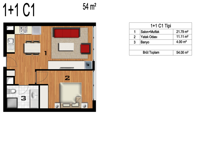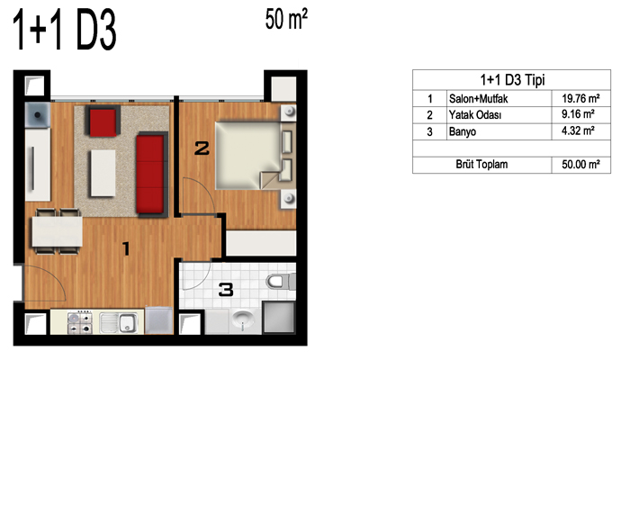 Daire Seçenekleri: 1+0,1+1,2+1