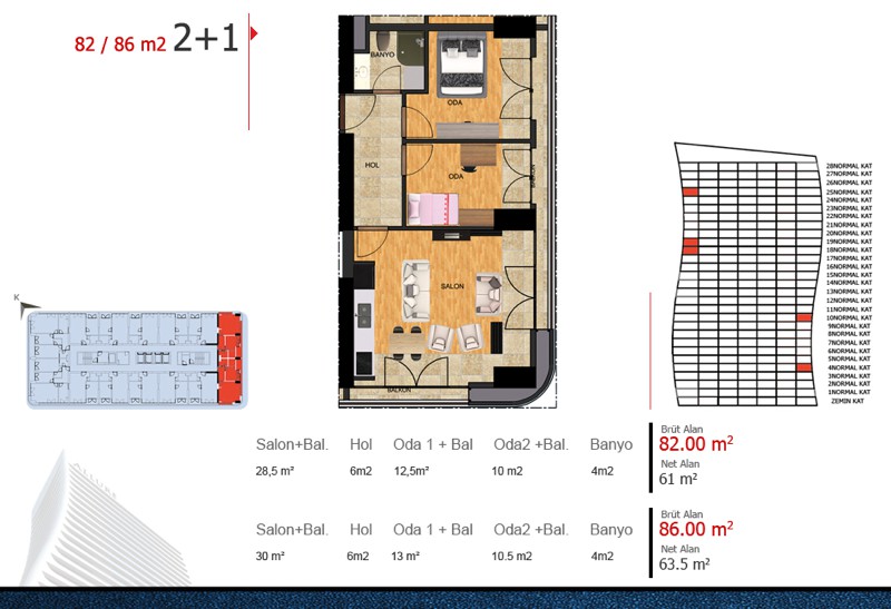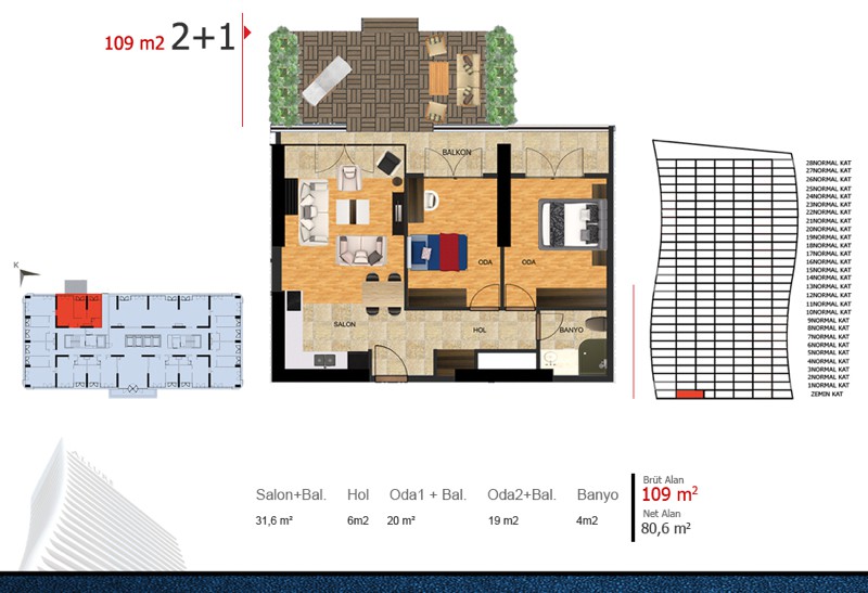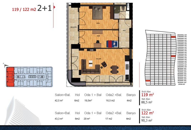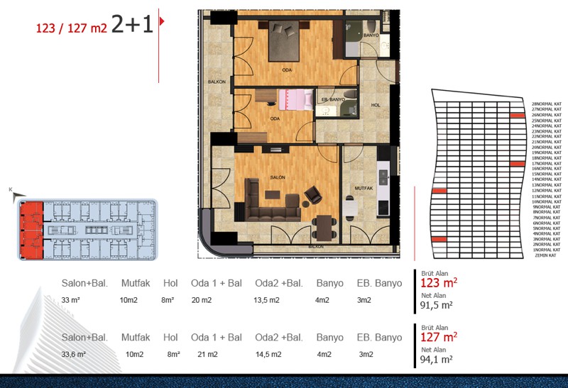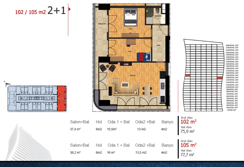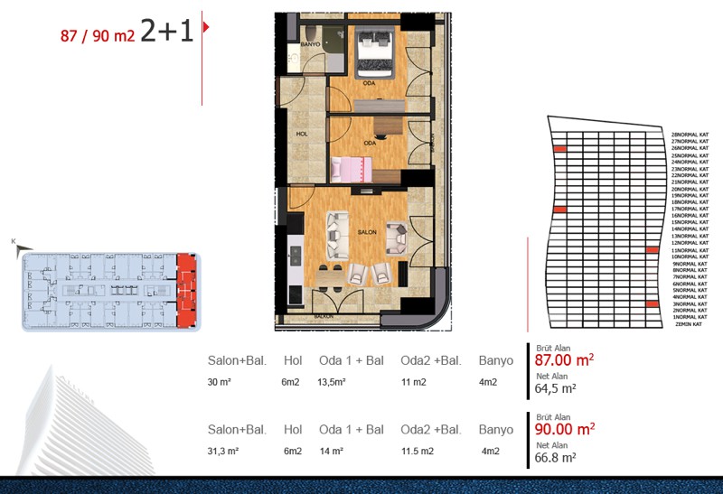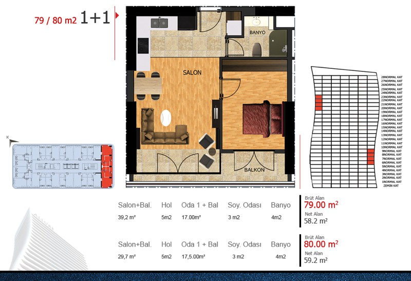 Daire Seçenekleri: 1+1,2+1