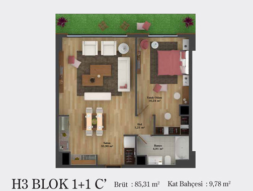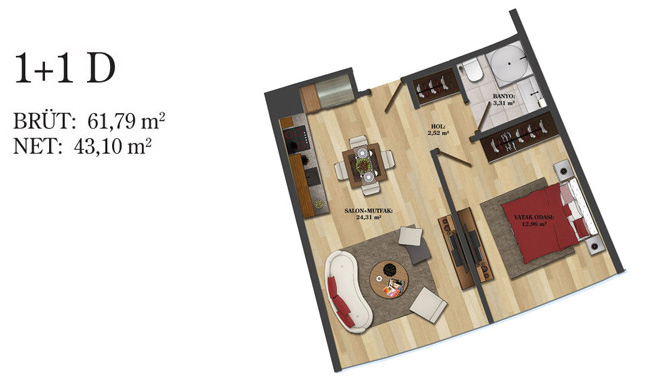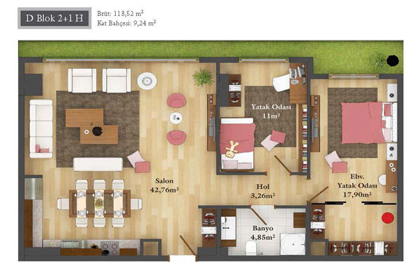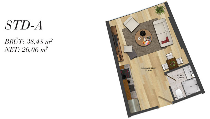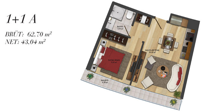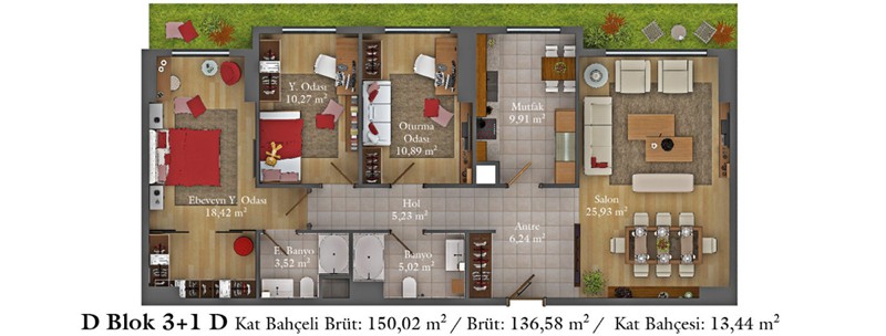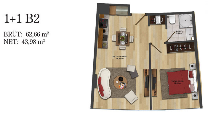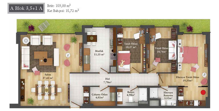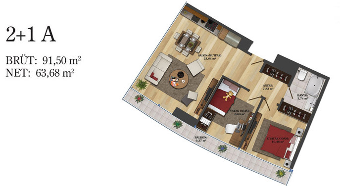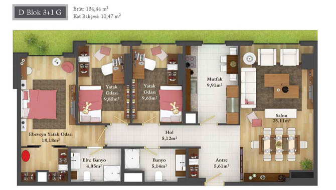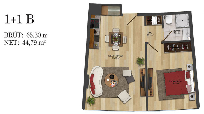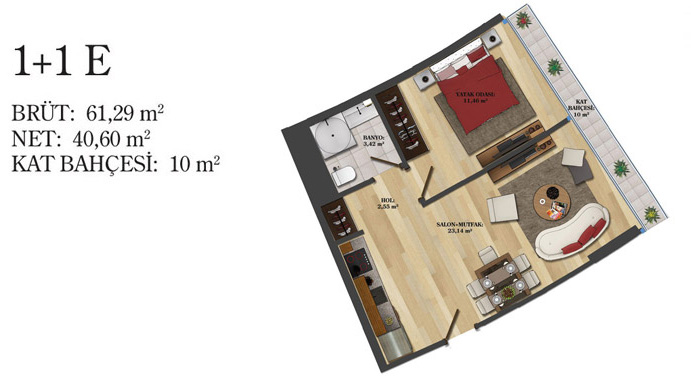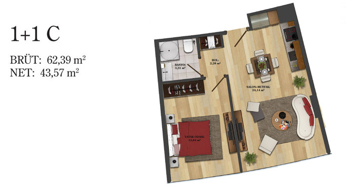Daire Seçenekleri: 1+0,1+1,2+1,2,5+1,3+1,3,5+1,4+1,4,5+1