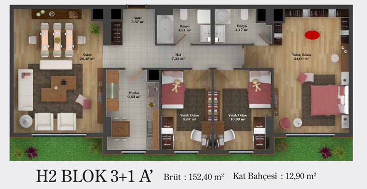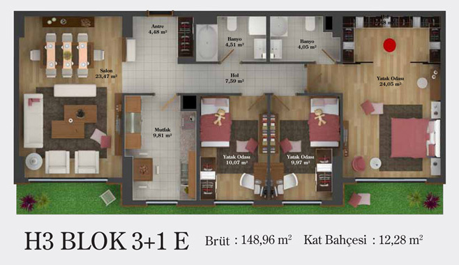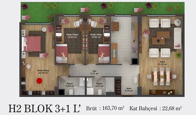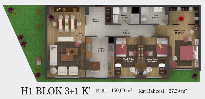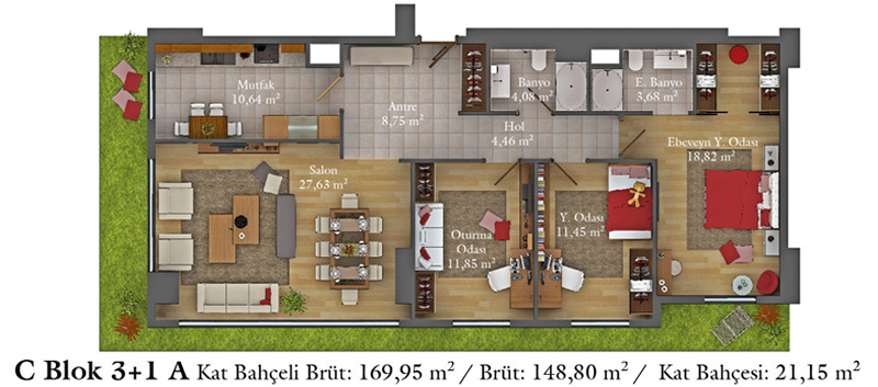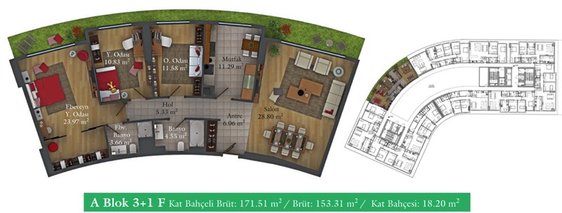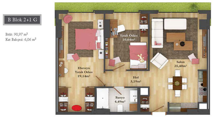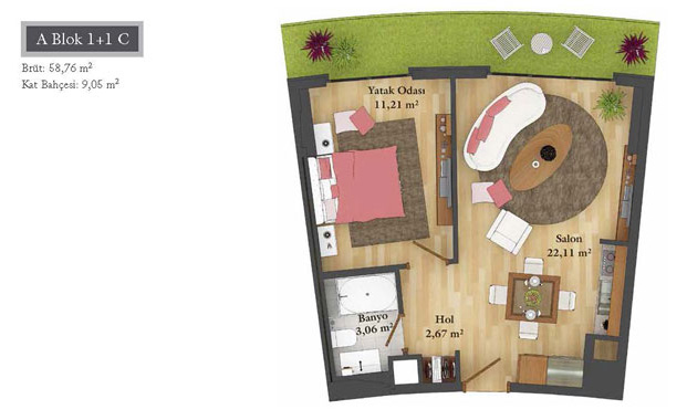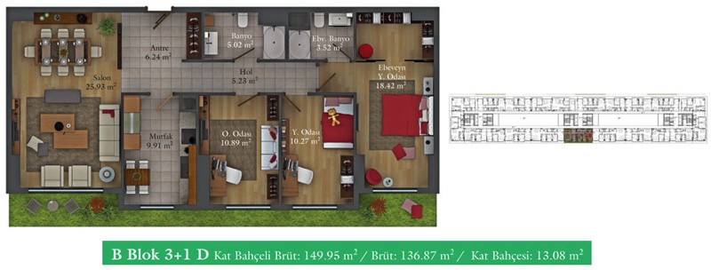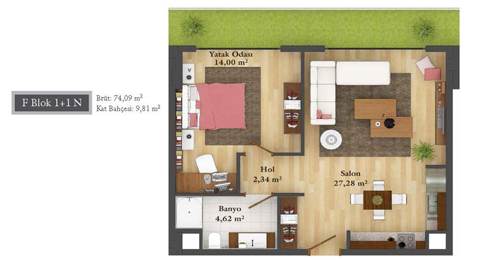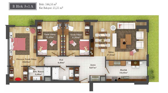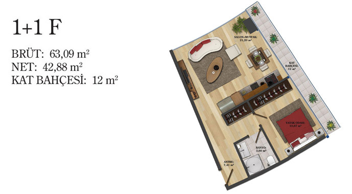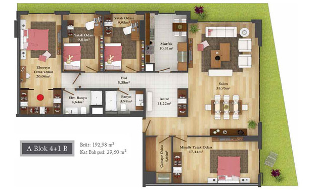 Daire Seçenekleri: 1+0,1+1,2+1,2,5+1,3+1,3,5+1,4+1,4,5+1