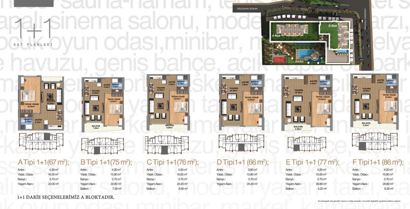 Daire Seçenekleri: 1+0,1+1, 2+1,3+1