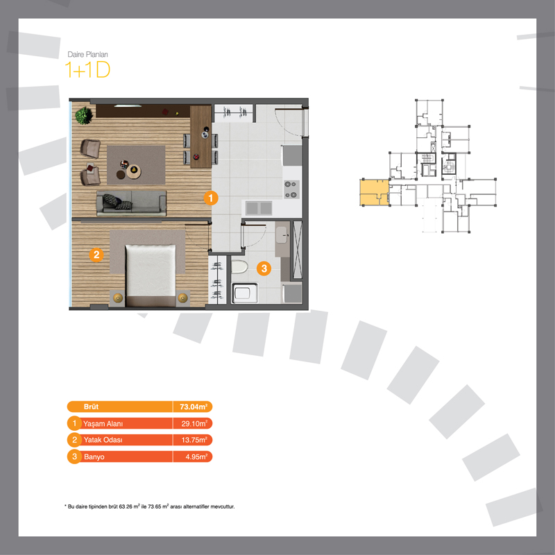 Daire Seçenekleri: 1+0,1+1,2+1,3+1