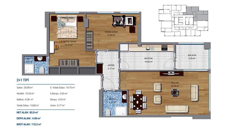 Daire Seçenekleri: 2+1, 3+1, 4+1