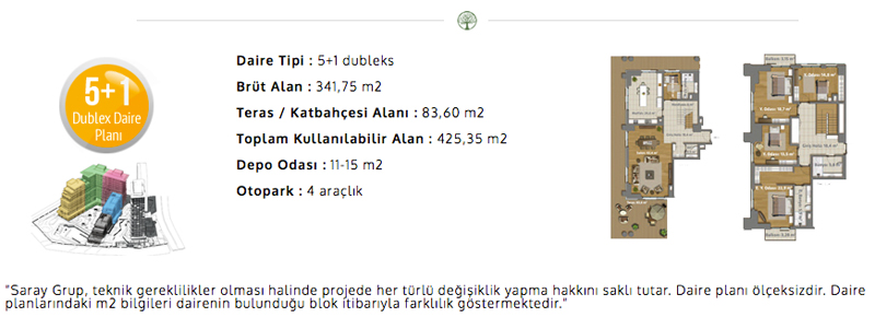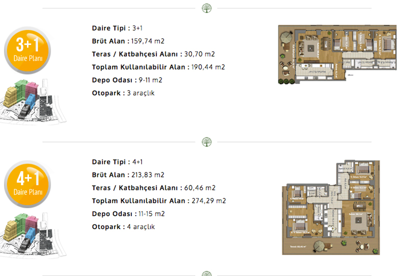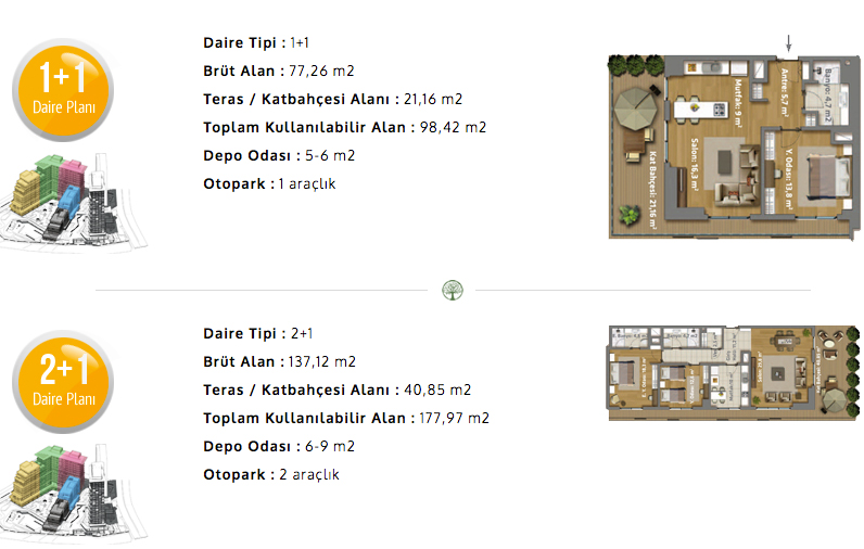Daire Seçenekleri: 1+1,2+1,3+1,4+1,5+1