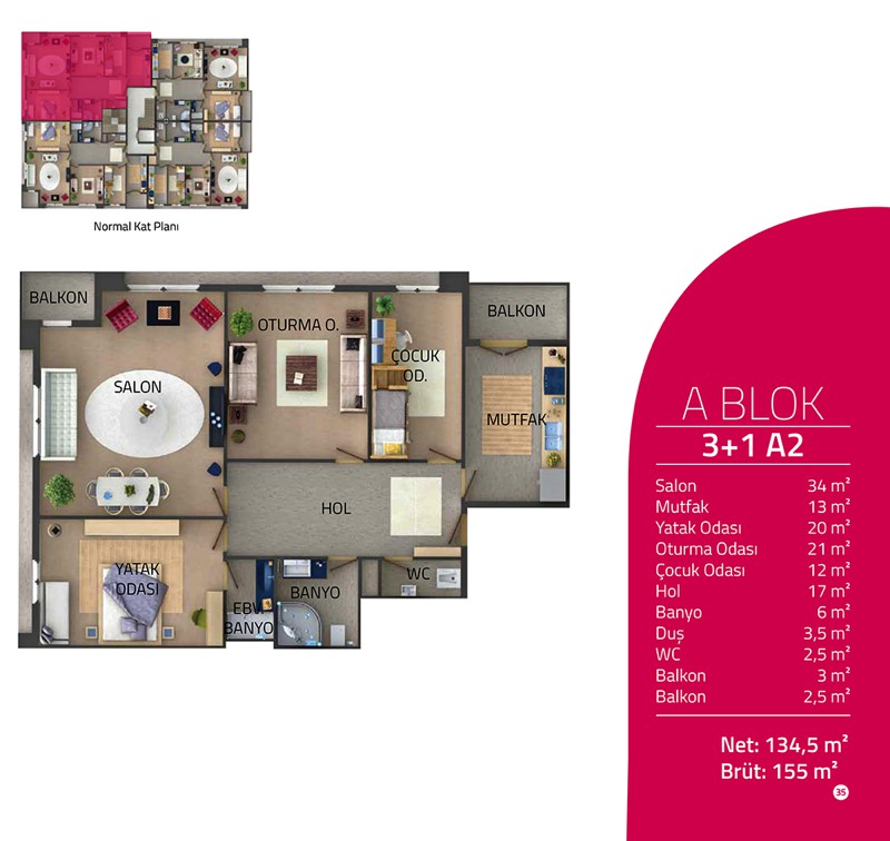 Metrekare Aralığı: 105