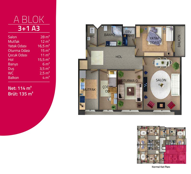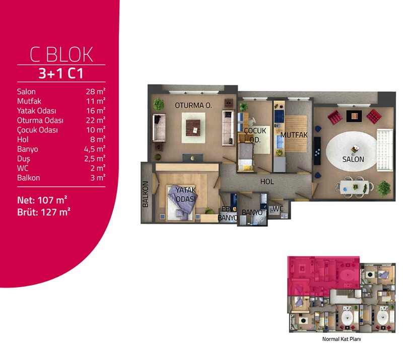 Daire Seçenekleri: 2+1,3+1