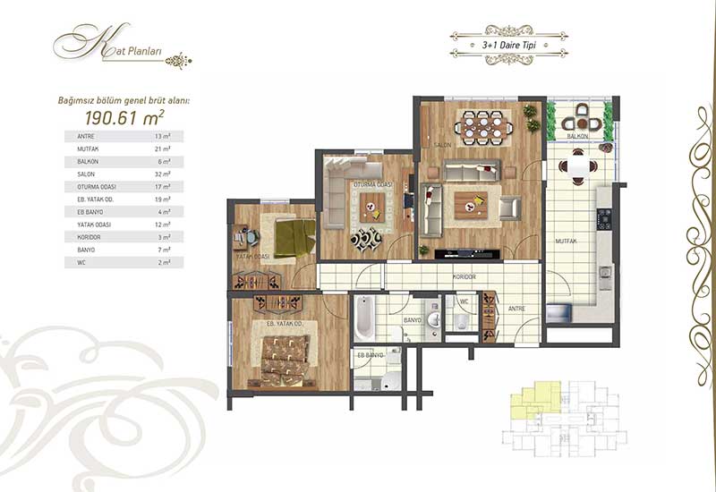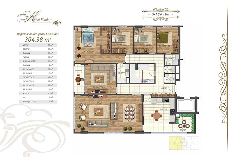 Daire Seçenekleri: 3+1, 4+1, 5+1