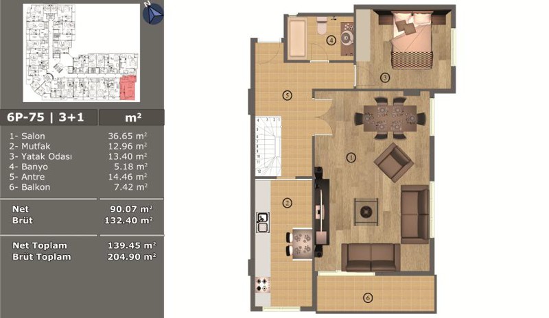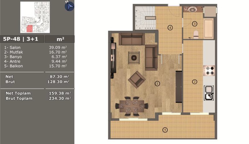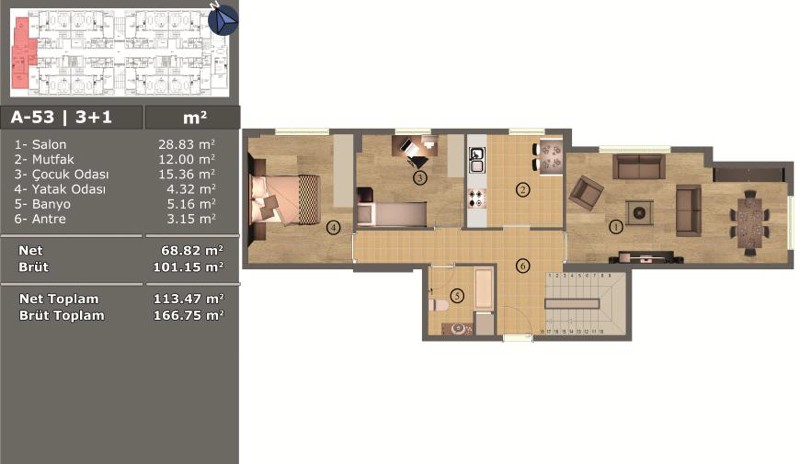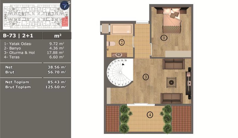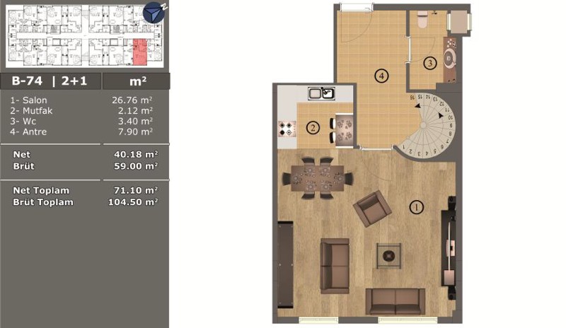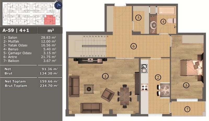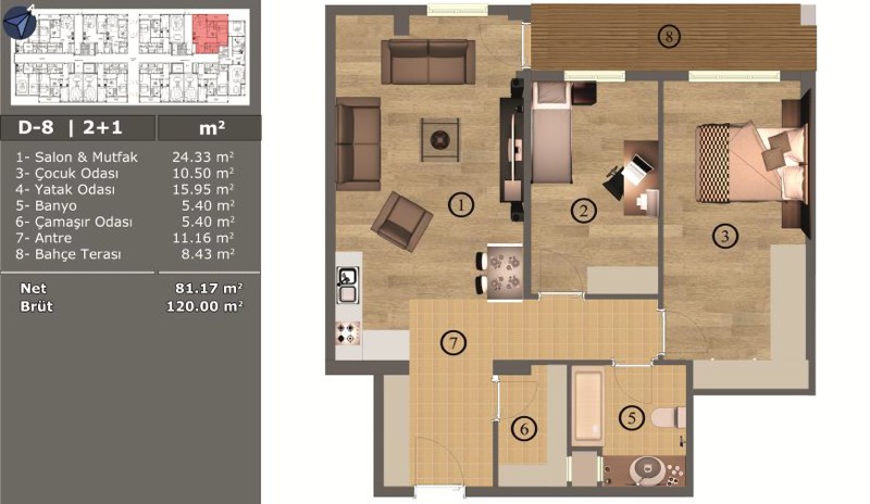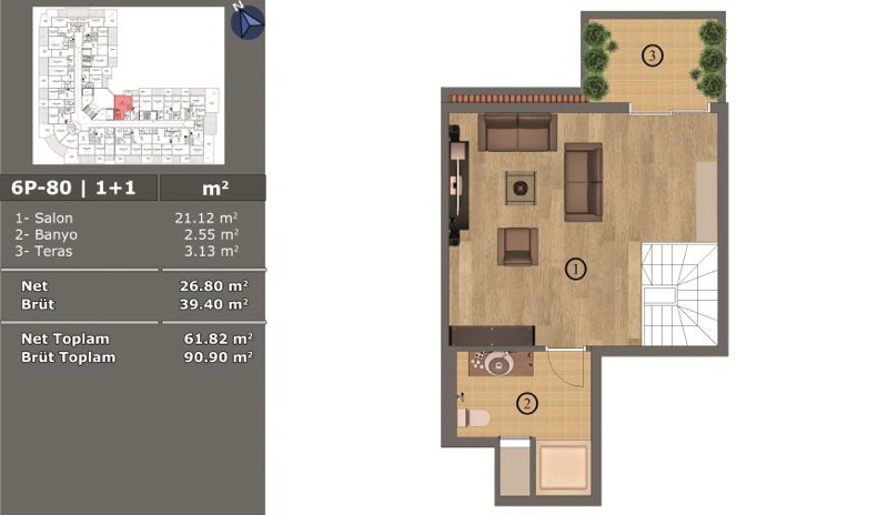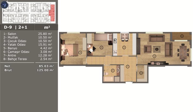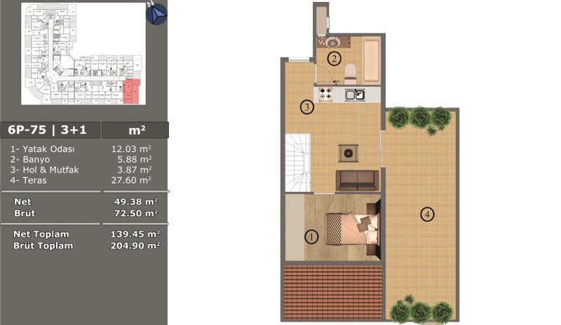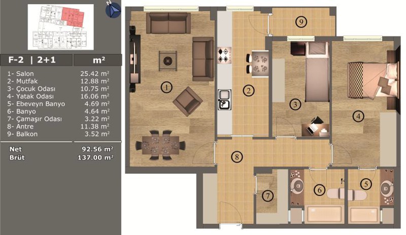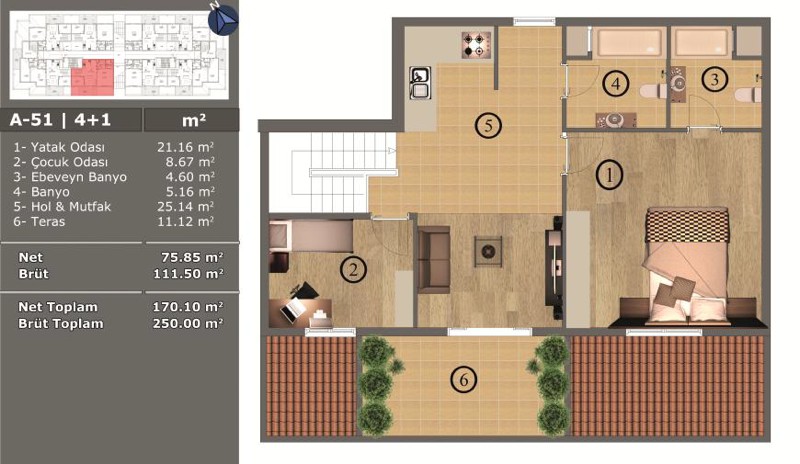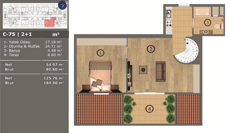 Daire Seçenekleri: 1+0,1+1,2+1,3+1,4+1+5+1