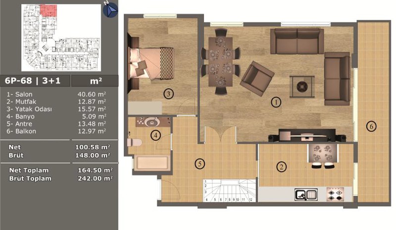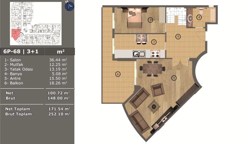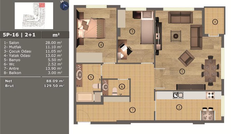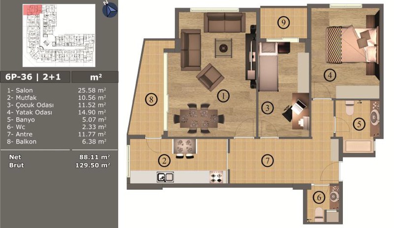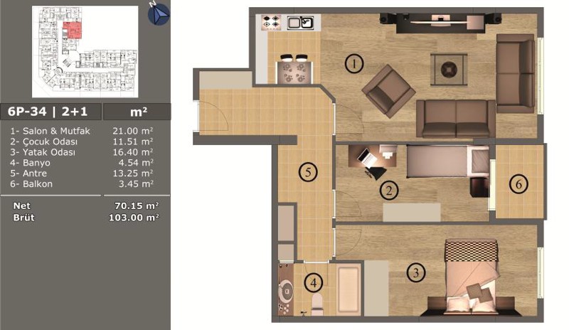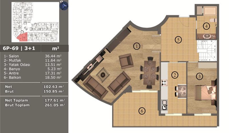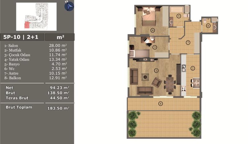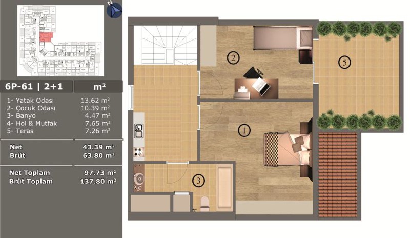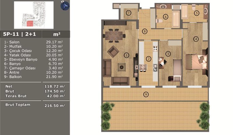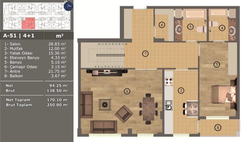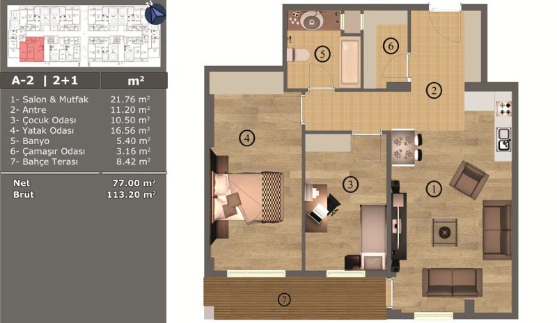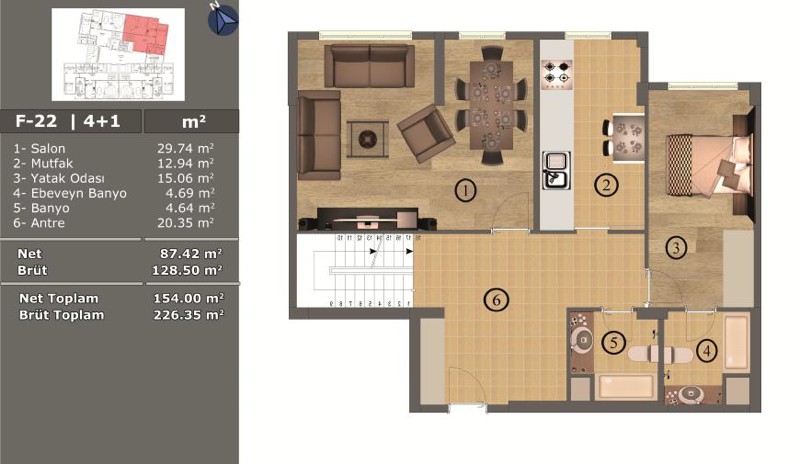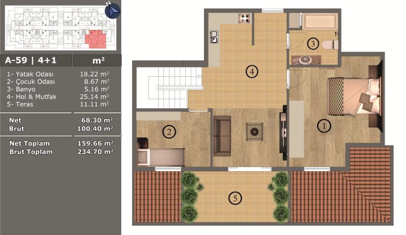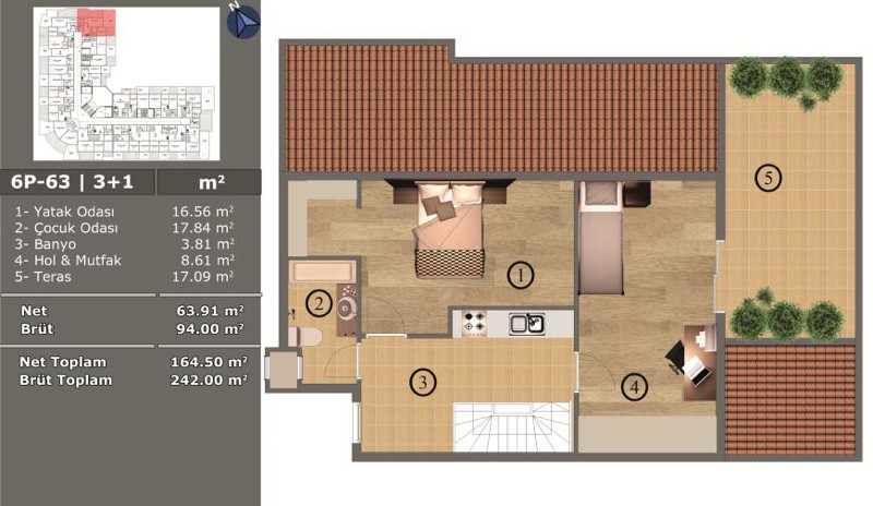 Daire Seçenekleri: 1+0,1+1,2+1,3+1,4+1+5+1