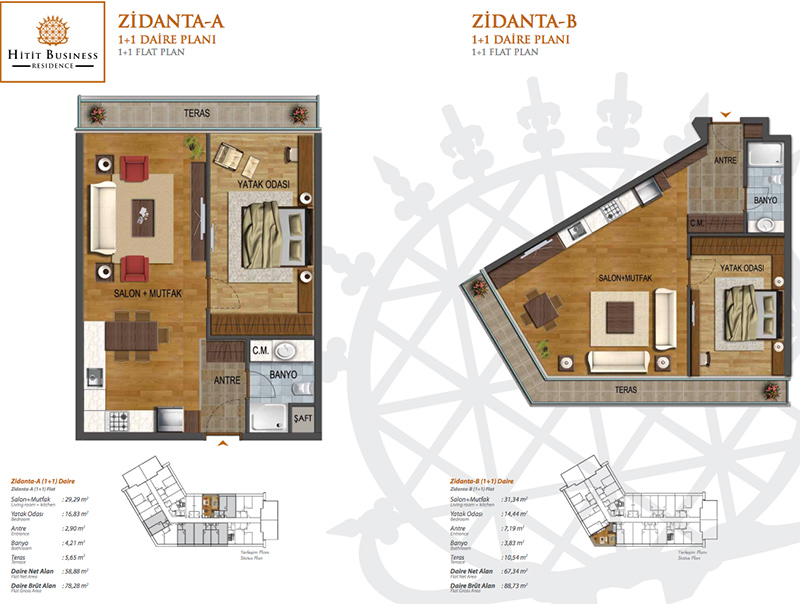 Daire Seçenekleri: 1+0,1+1,2+1