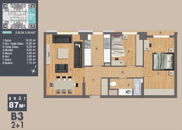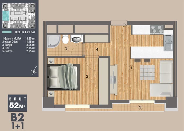 Daire Seçenekleri: 1+0,1+1,2+1,3+1,4+1