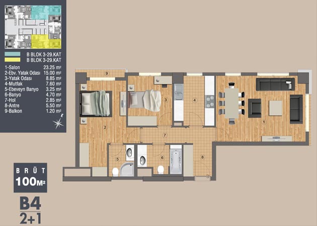 Metrekare Aralığı: 30.00 - 160.00