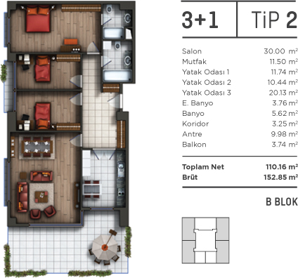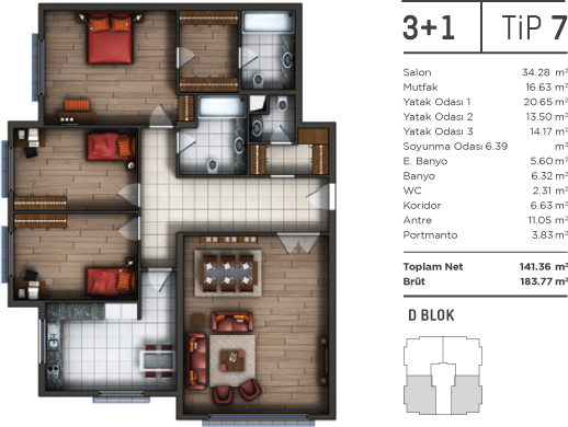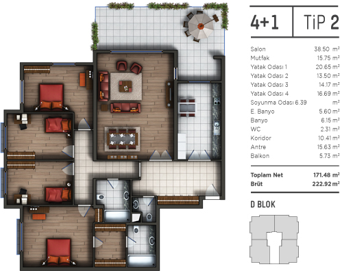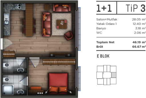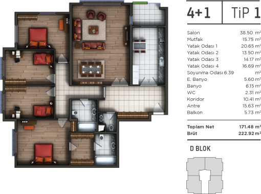 Daire Seçenekleri: 1+0,1+1,2+1,3+1,4+1