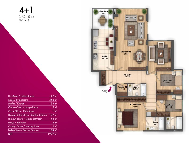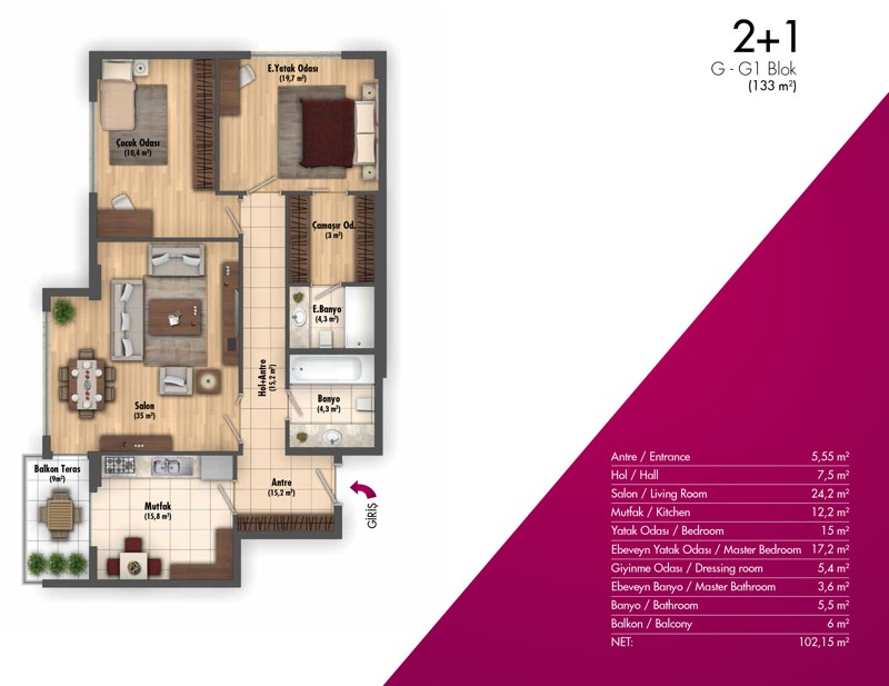 Daire Seçenekleri: 2+1,3+1,4+1