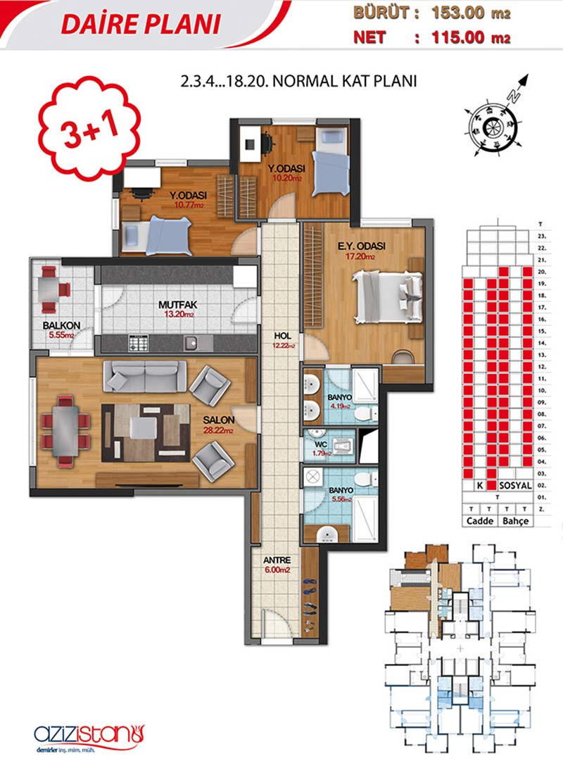 Daire Seçenekleri: 2+1, 3+1, 4+1, 5+1