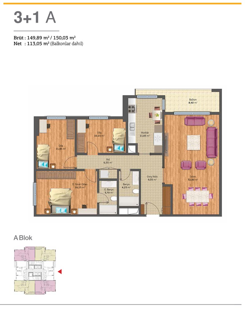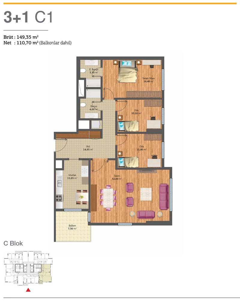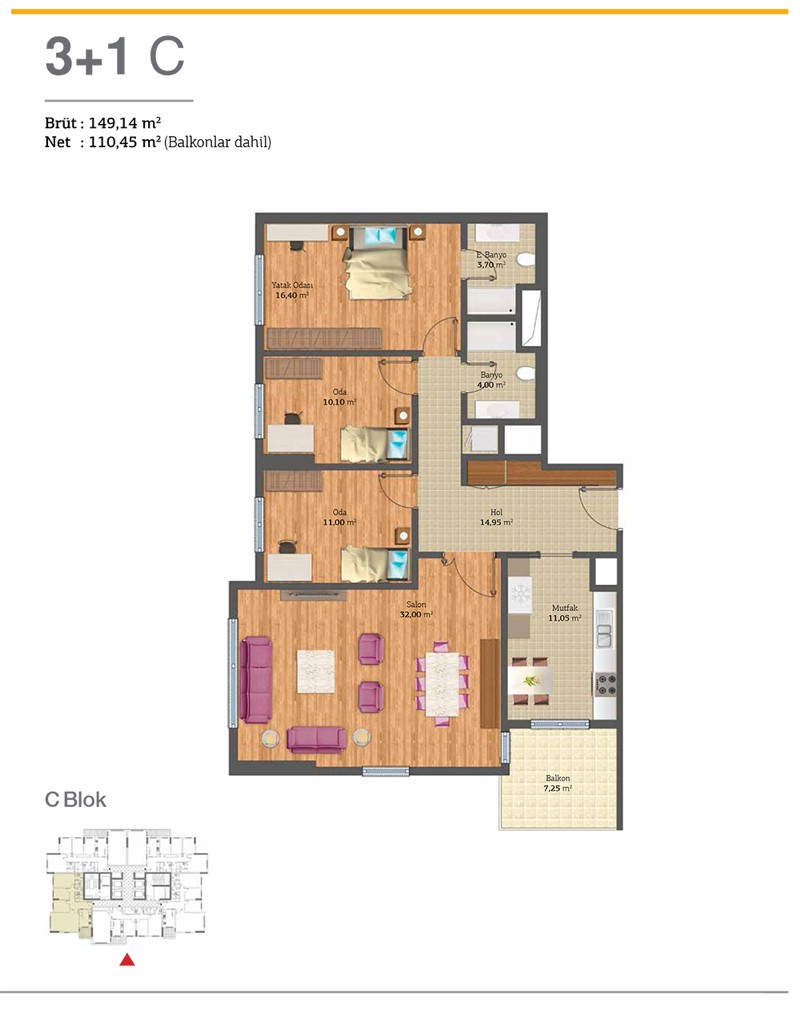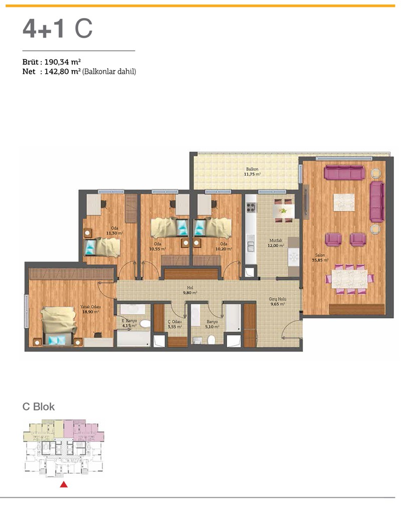 Daire Seçenekleri: 1+1,2+1,3+1,4+1