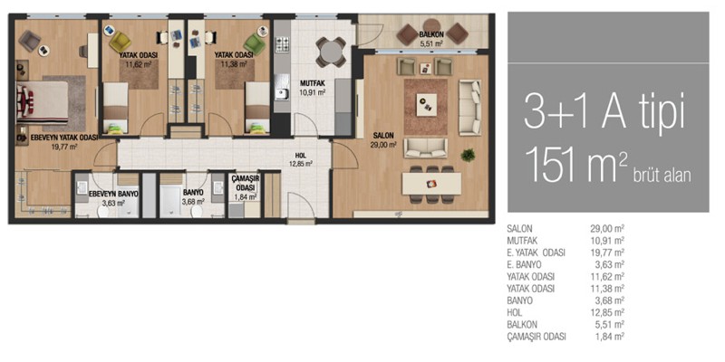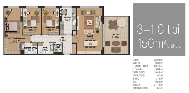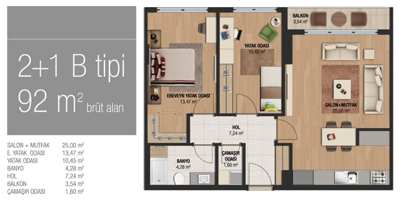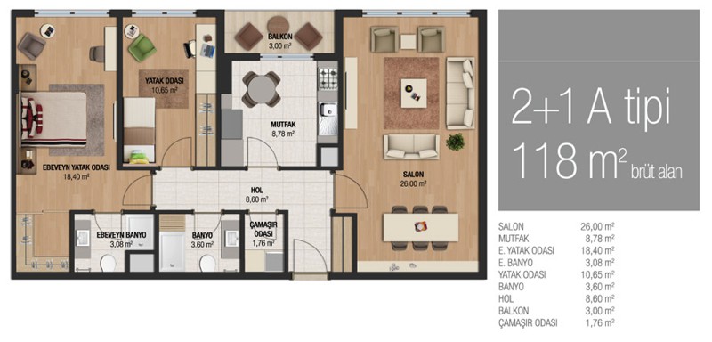 Daire Seçenekleri: 1+0,1+1,2+1,3+1