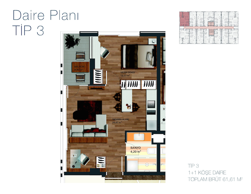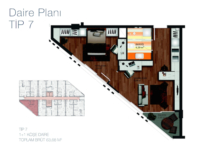 Daire Seçenekleri: 1+0,1+1, 2+1