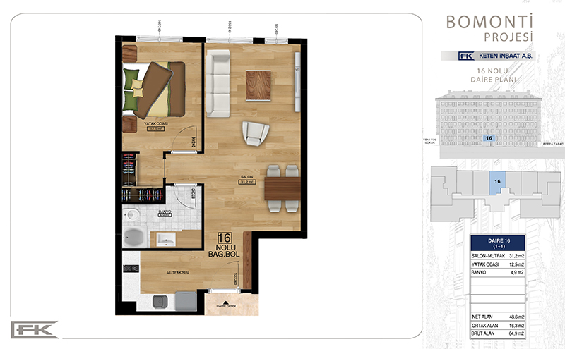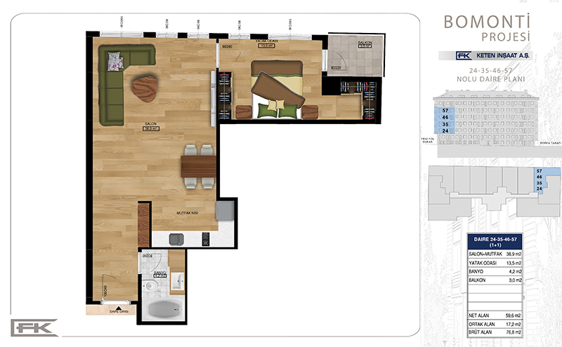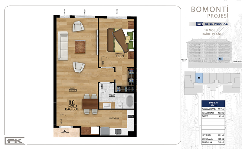 Daire Seçenekleri: 1+1,2+1,3+1