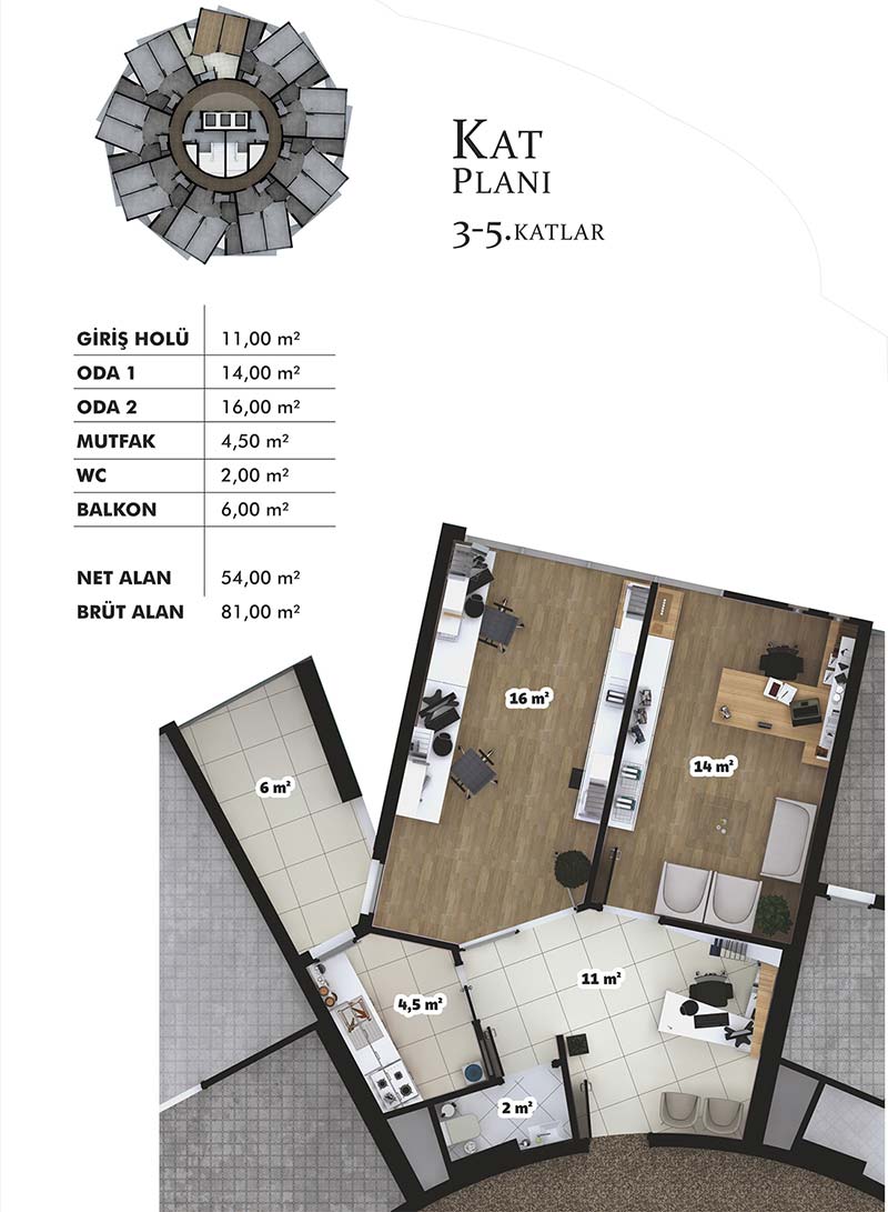 Daire Seçenekleri: 1+1