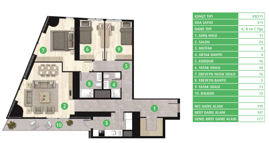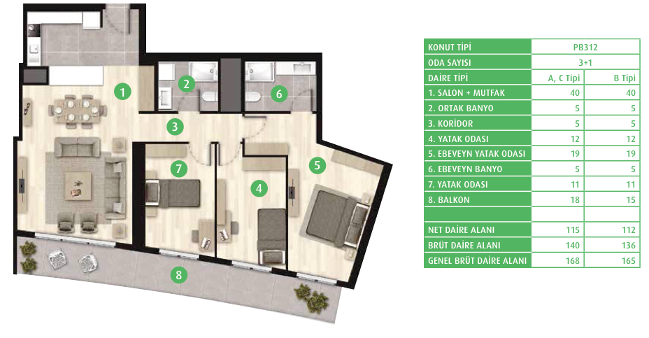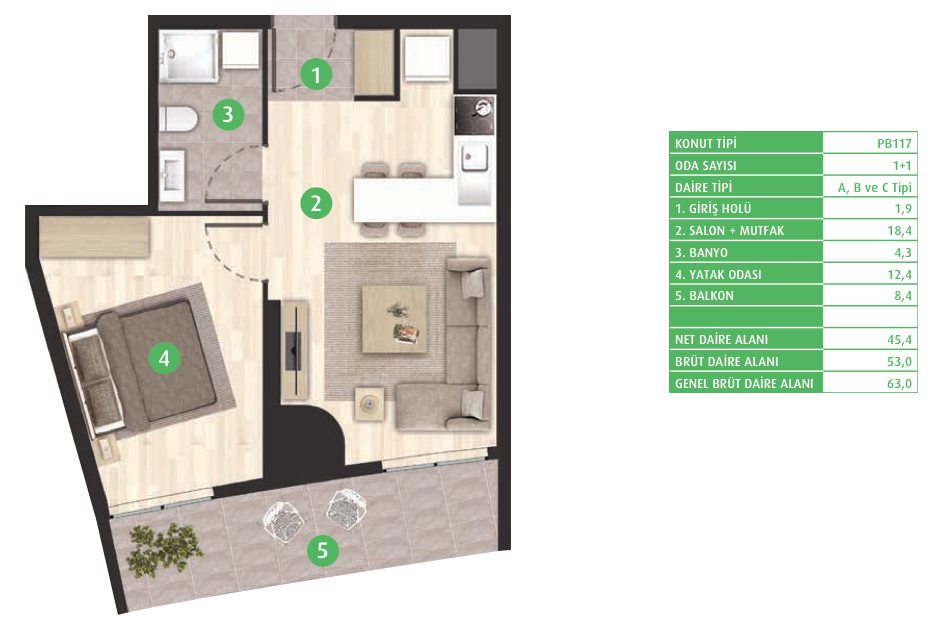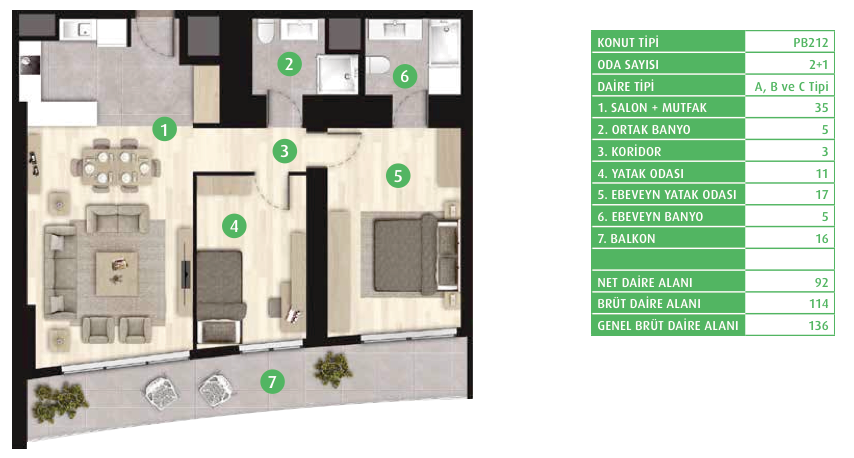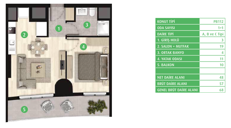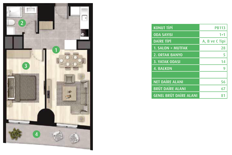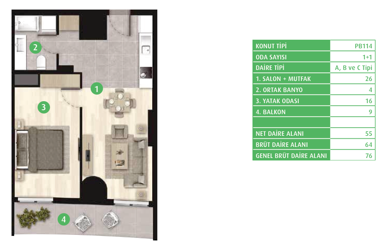 Daire Seçenekleri: 1+0,1+1,2+1,3+1