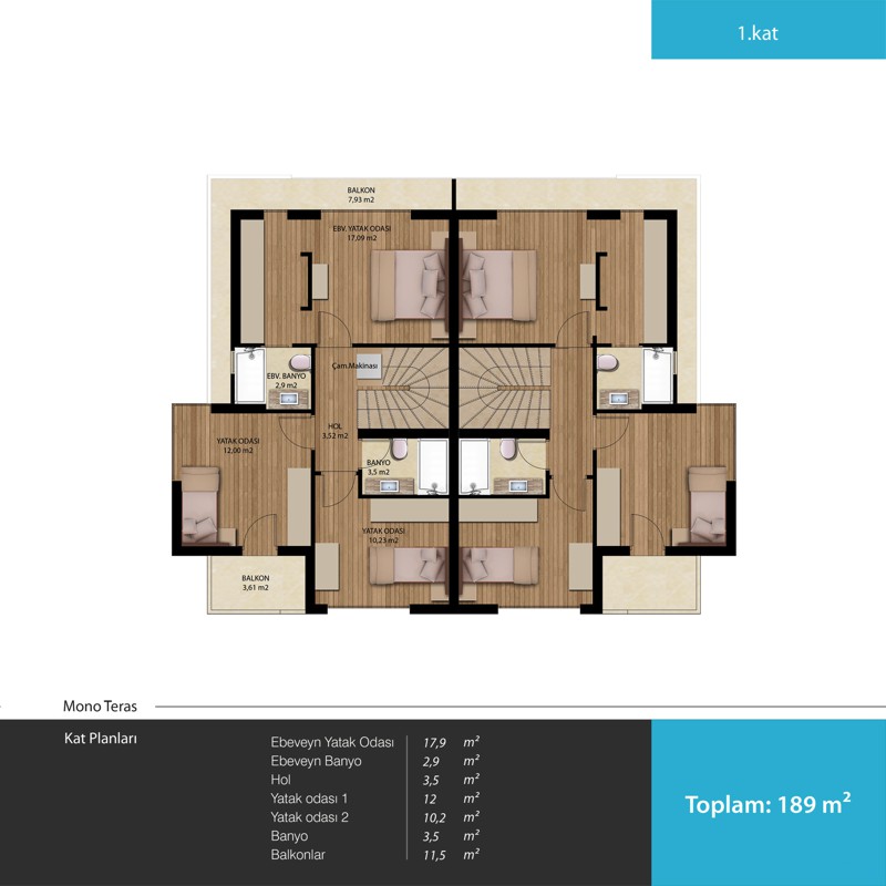 Metrekare Aralığı: 189