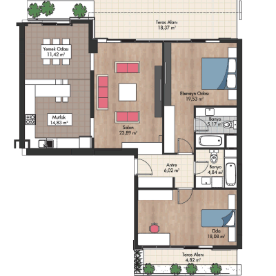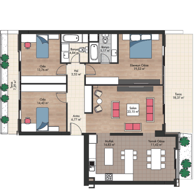 Daire Seçenekleri: 1+1,2+1,3+1,4+1