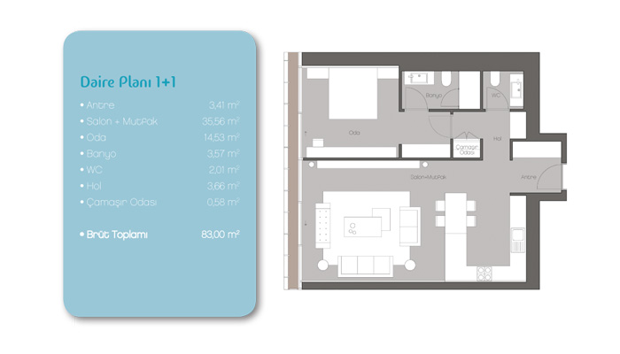Daire Seçenekleri: 1+1,2+1,3+1,4+1,5+1