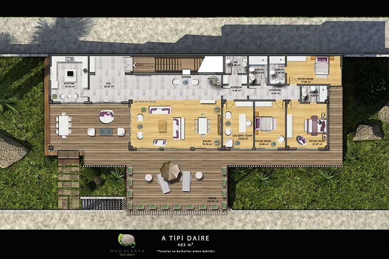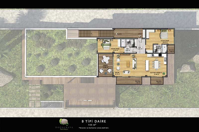 Daire Seçenekleri: 5+1 dubleks konutlar, 4+1 tek konutlar, 3+1 tek ko