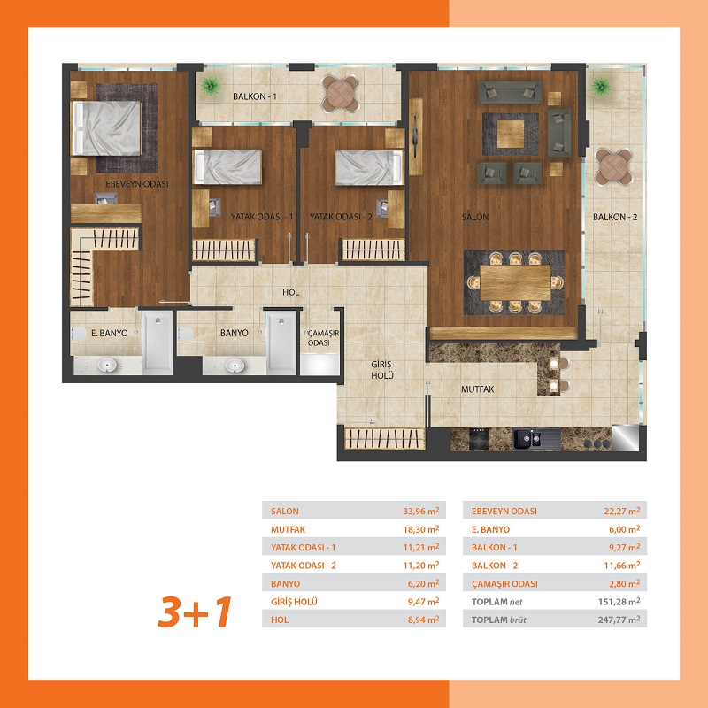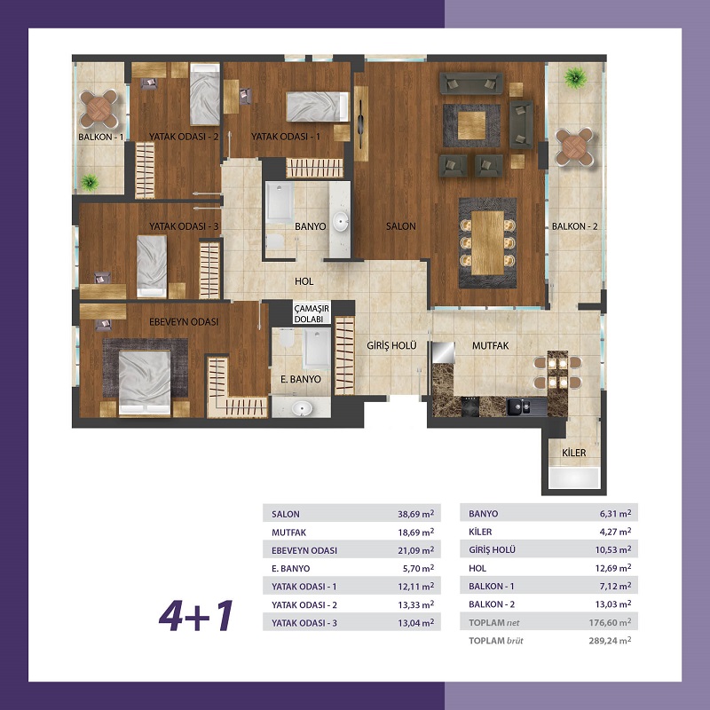 Daire Seçenekleri: 1+1,2+1,3+1,4+1